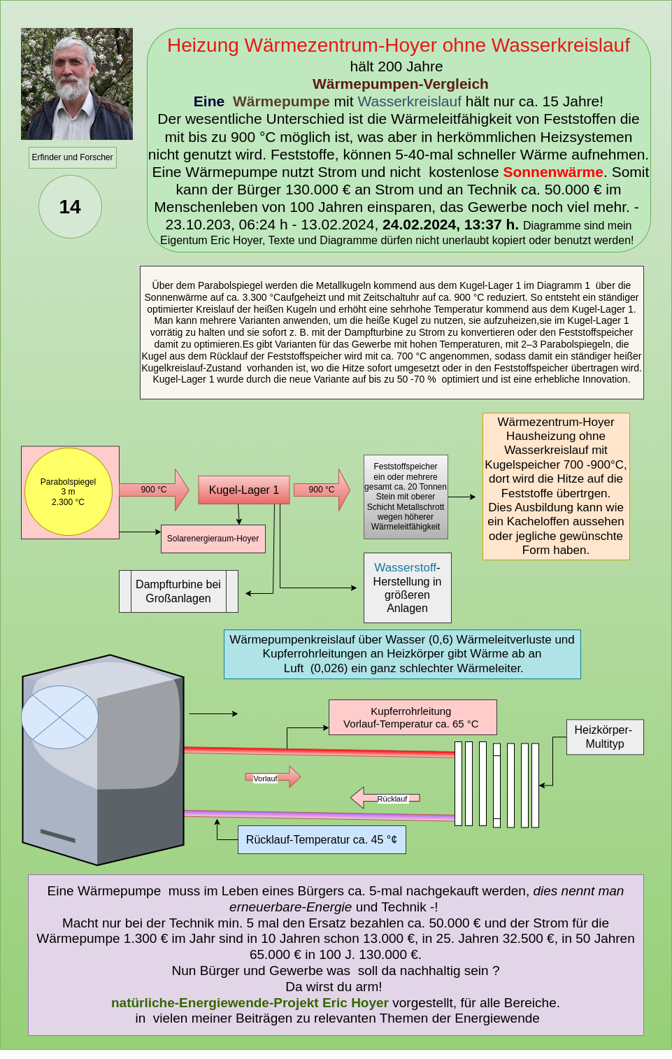 Z. B. würde man durch meine Systeme der Kugelheizung-Hoyer generell ca. 80 % Gas, Öl und Kohle einsparen,
